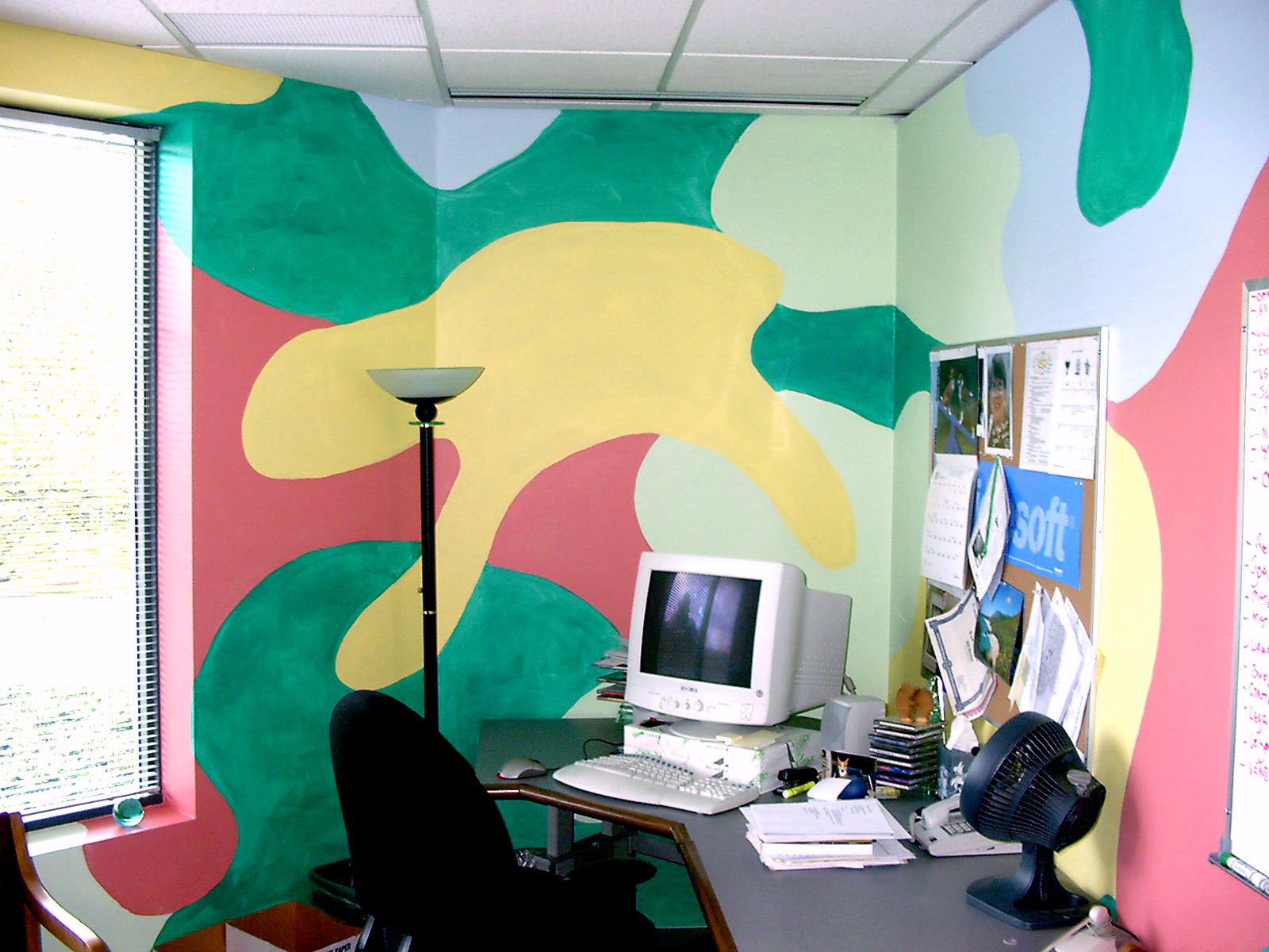 Colors from the outside pour in through the window and splash against the walls
