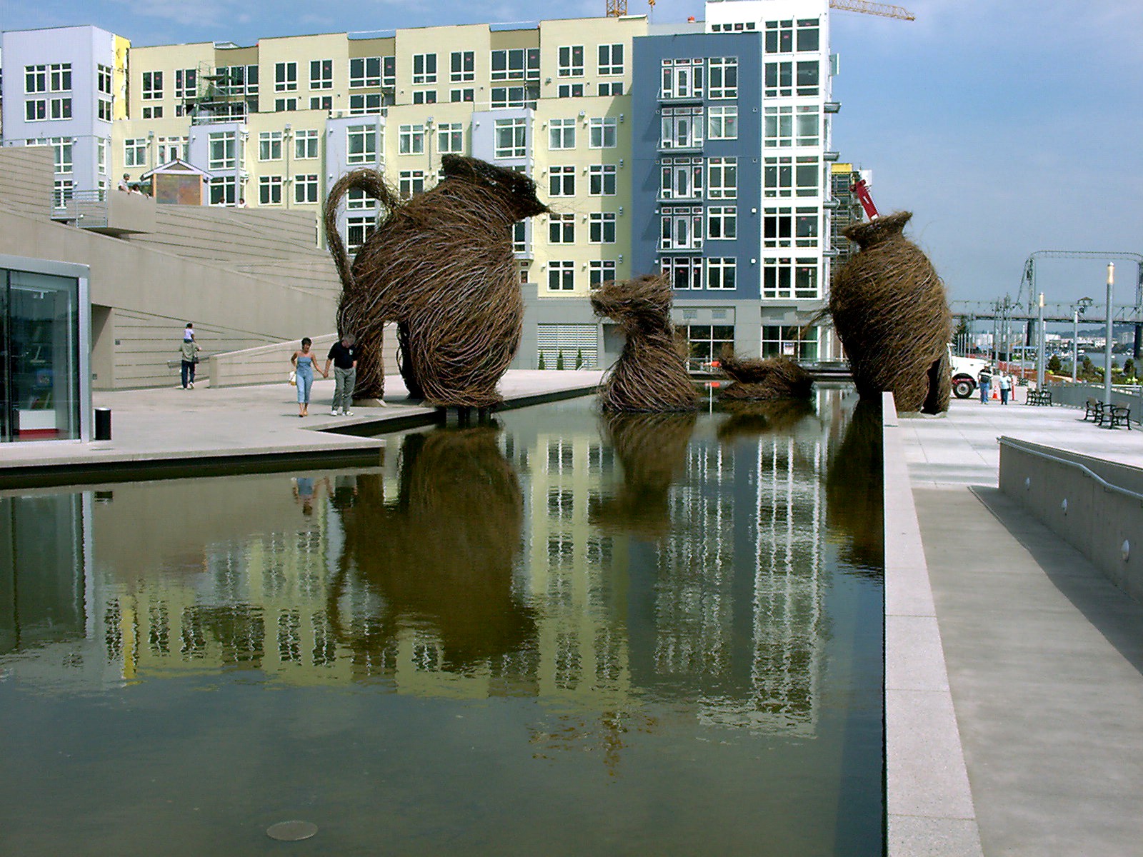 Outside, Howard Ben Tré's Water Forest delights both young and old