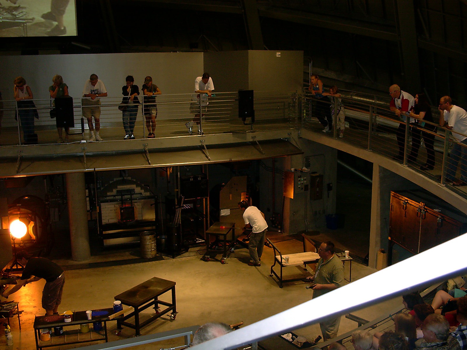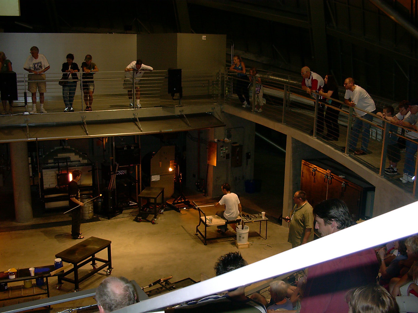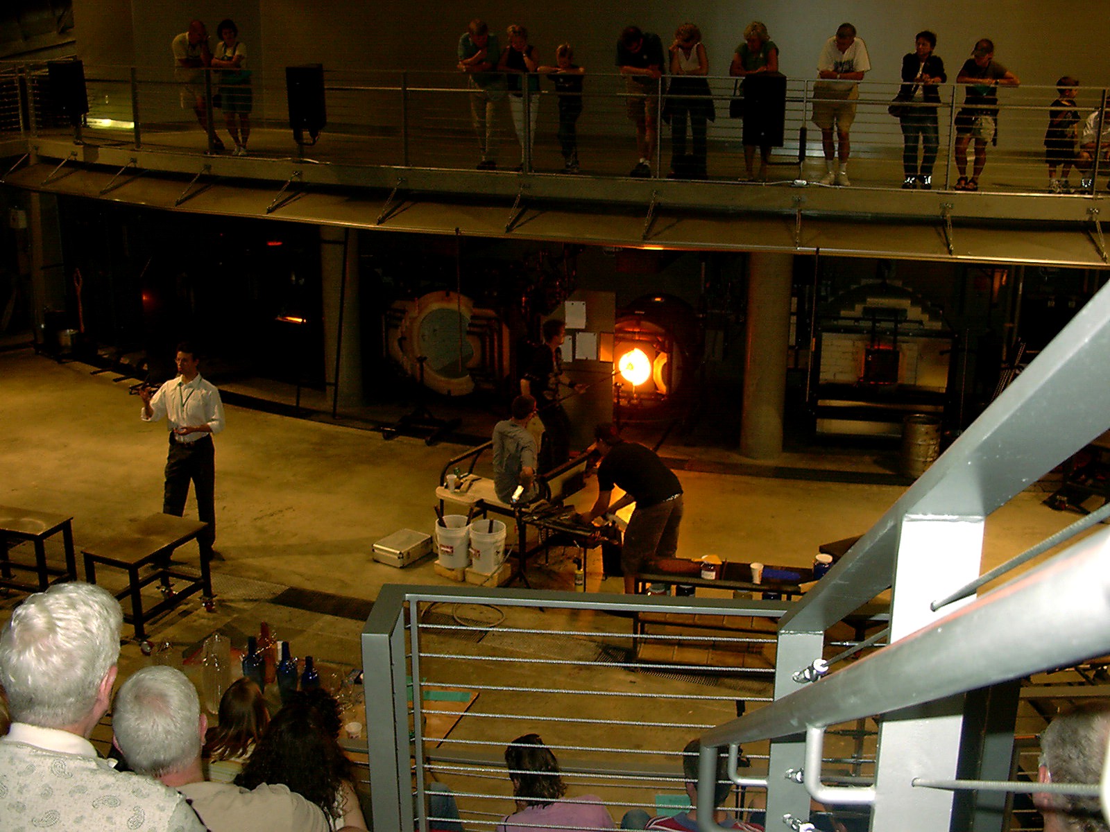 Here, glass blowers create beautiful works of art before a watchful crowd