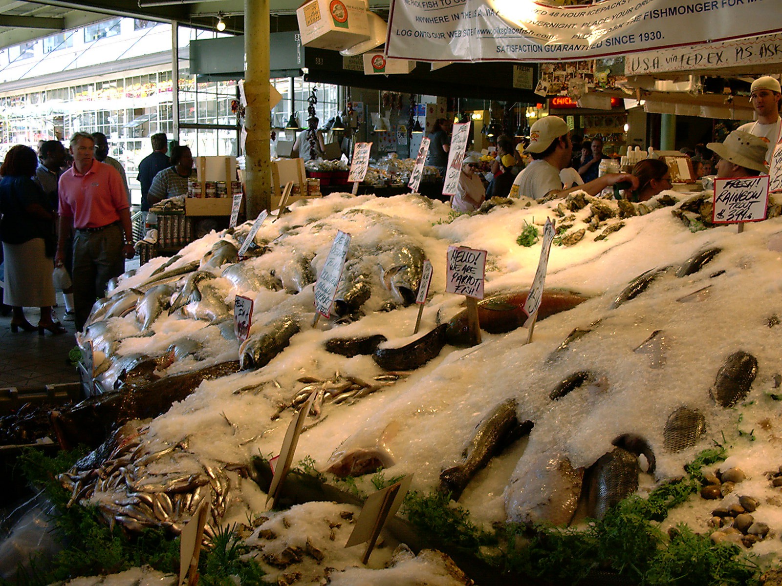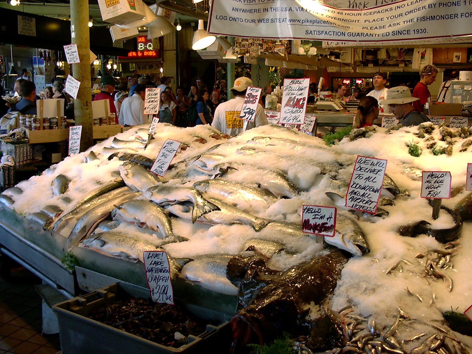 Here you can even see 'flying fish' -- the choicest salmon tossed by the fish monger to the guys behind the counter. A new meaning to the phrase catch-of-the-day!