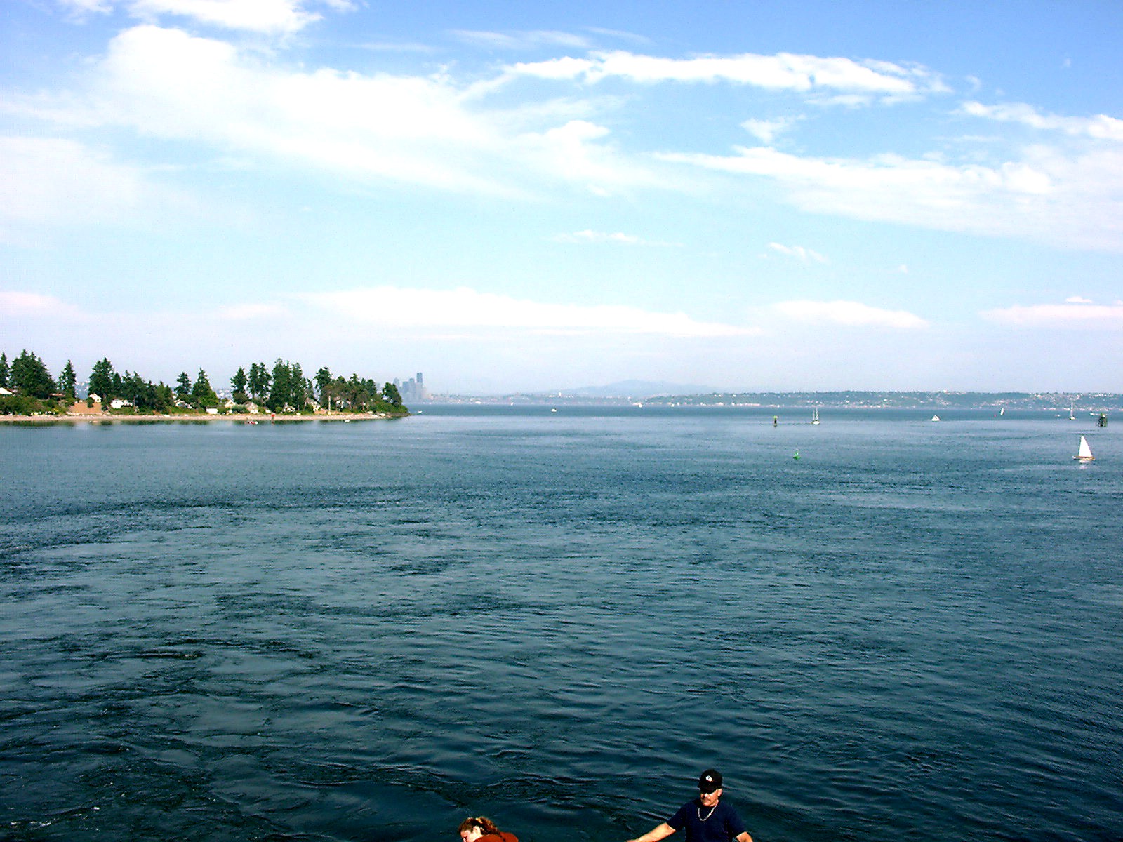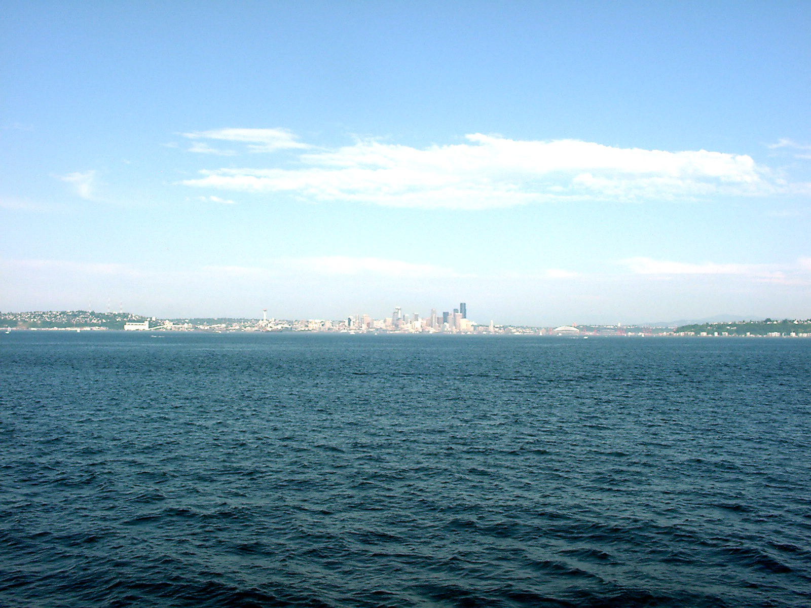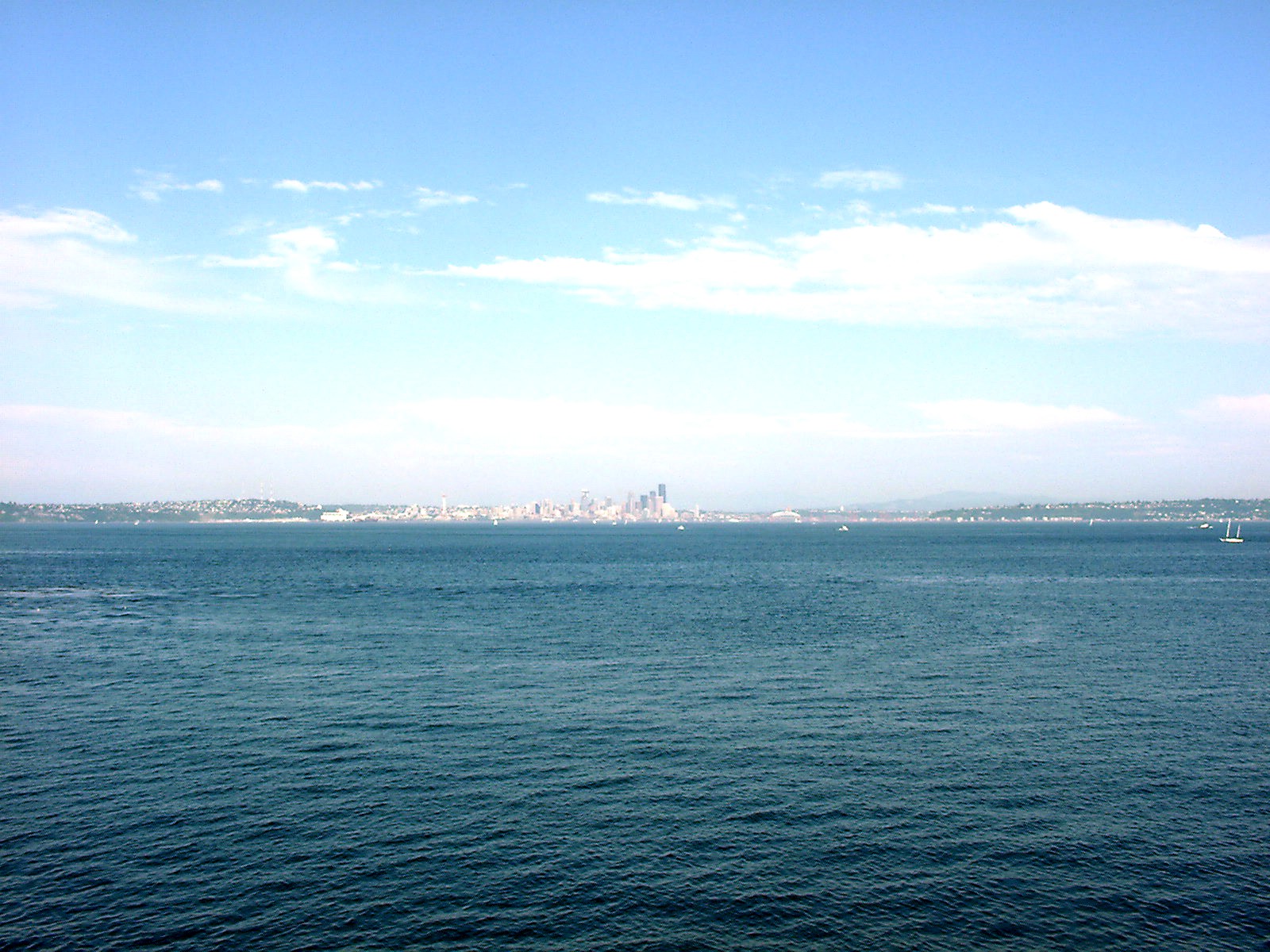 From the Bainbridge Island docks, Seattle can just be seen on the horizon