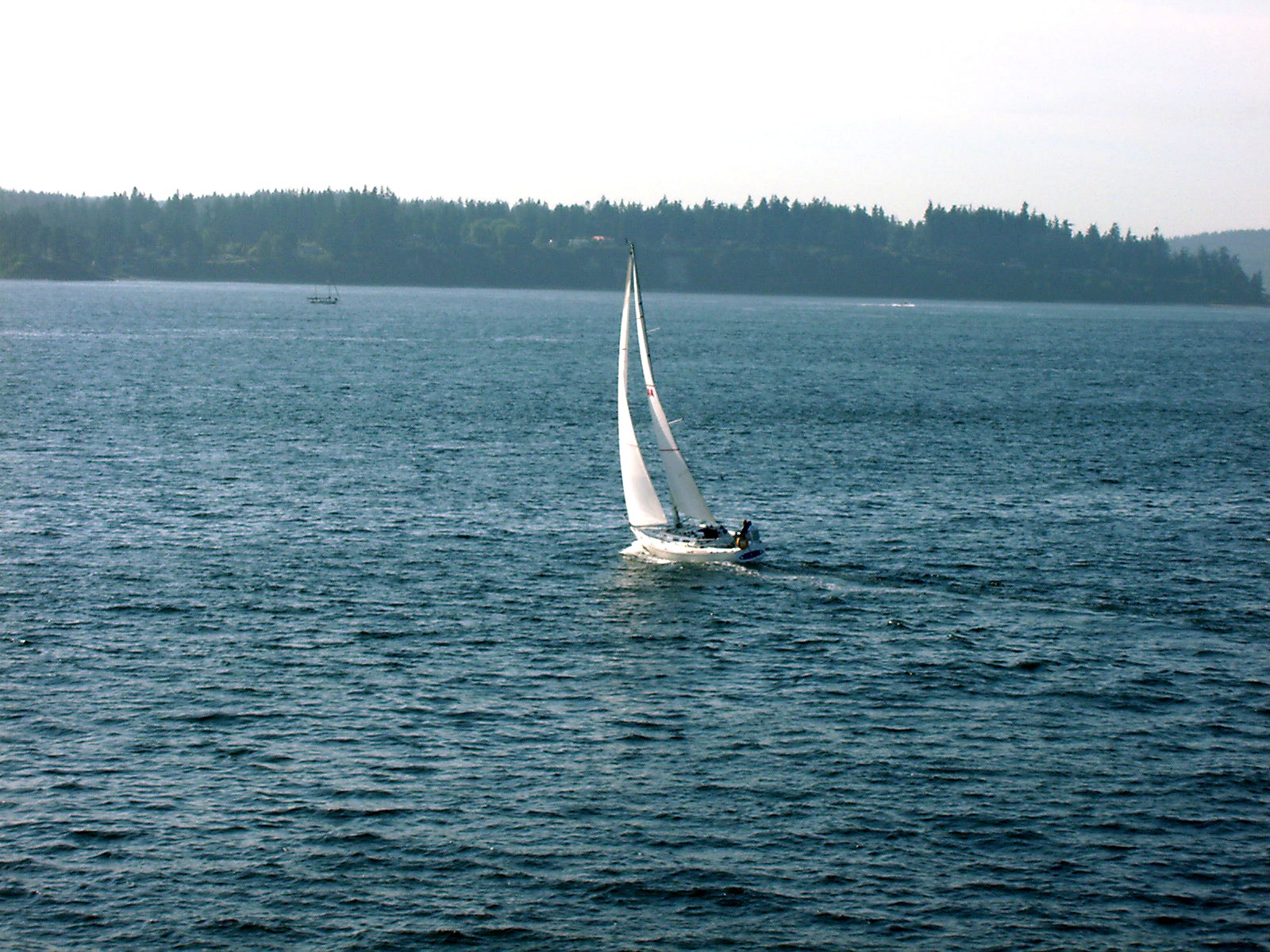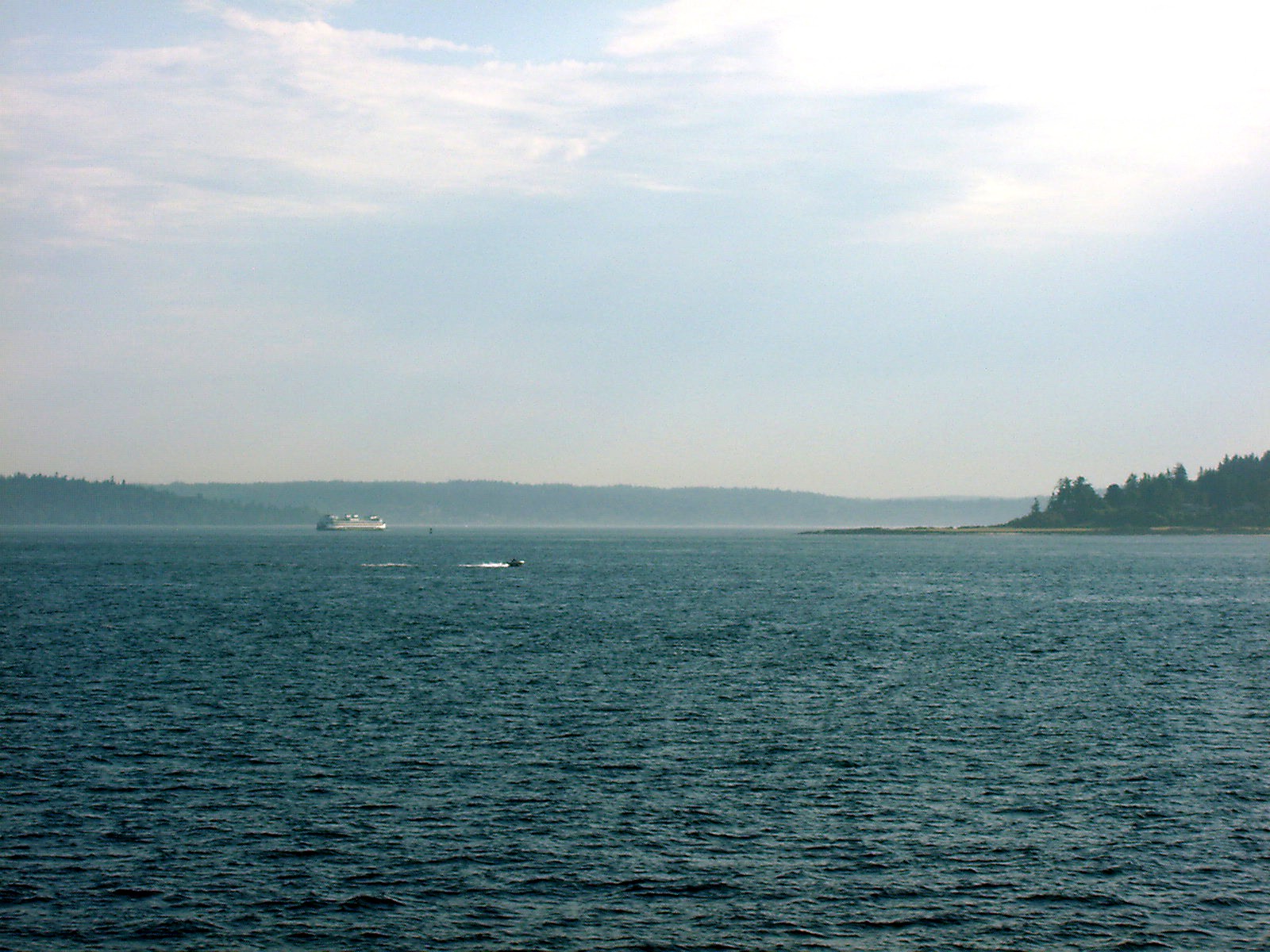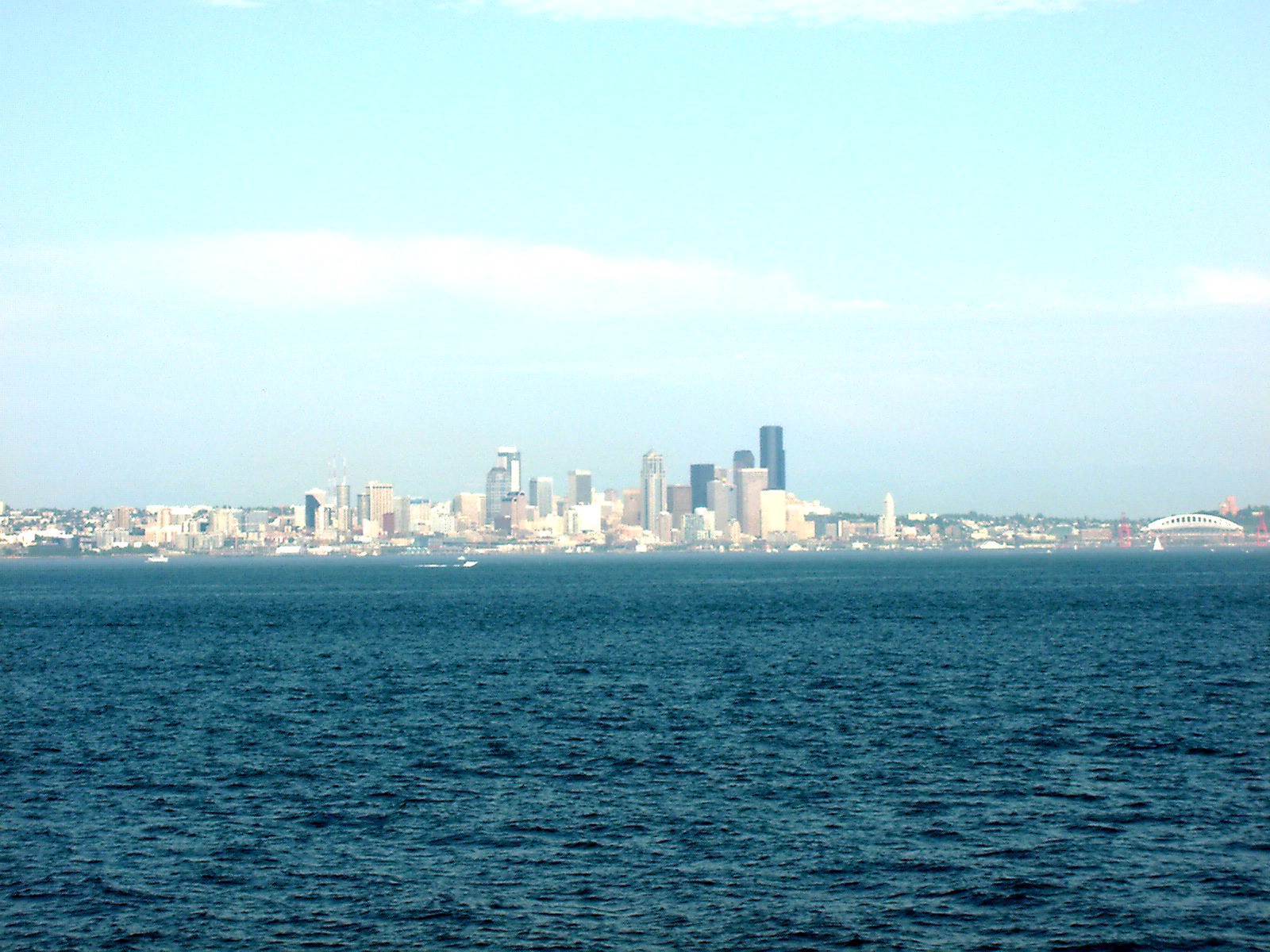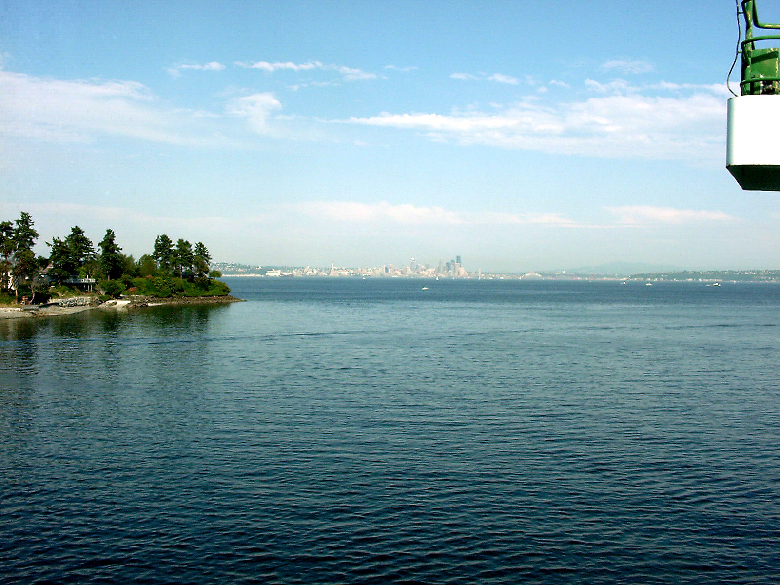 From the Bainbridge Island docks, Seattle can just be seen on the horizon